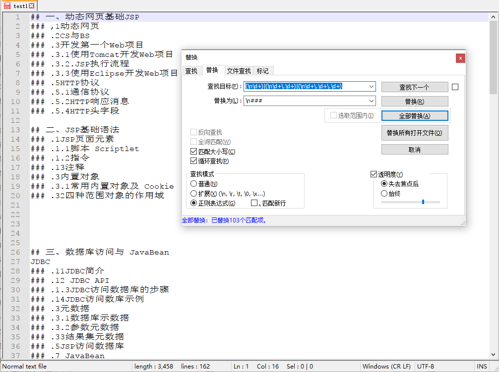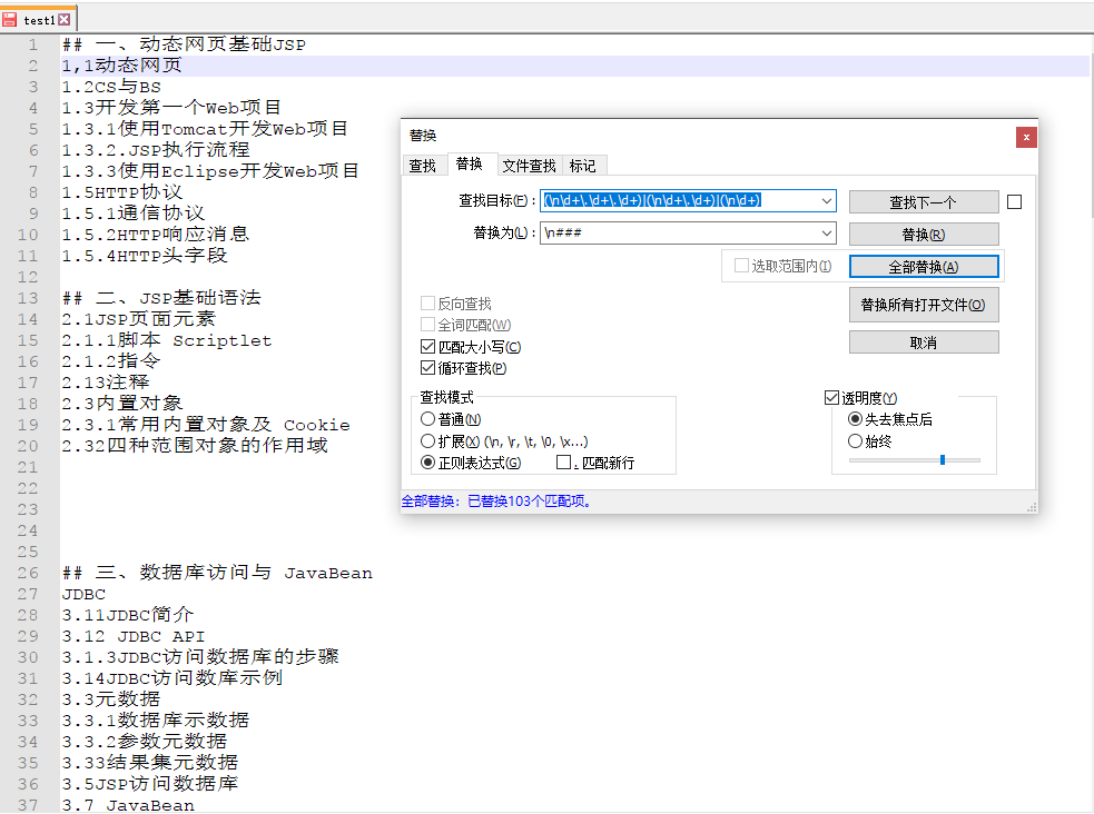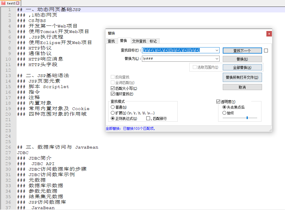 可以看到,匹配后结果只匹配并替换了(nd+),而导致后面的两个或条件没有匹配到
